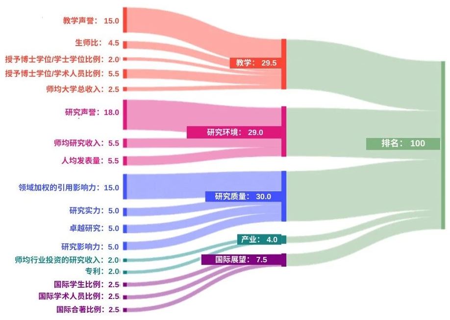 The ranking indicators use the same 18 performance indicators as the 2026 Times World University Rankings, summarizing scores in the categories of teaching, research environment, research quality, international outlook, and industry.