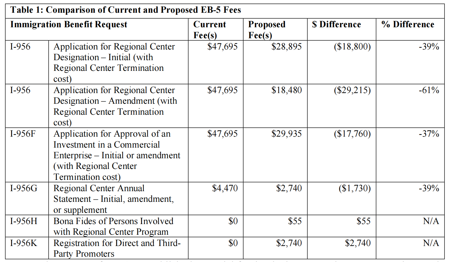 • I-956(区域中心初始指定):从47,695美元降至28,895美元,降幅39%;